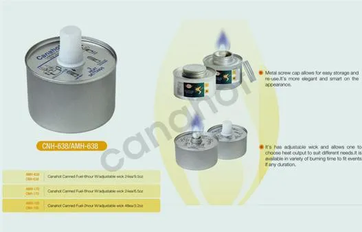 Pemanasan bahan api, sepertiGel kalengan, cecair api, alam sekitar - bahan api rakan, minyak tumbuhan,Minyak bahan api dalam tin yang boleh diguna semula untuk periuk panas kecil, minyak mesra alam, minyak bahan api tunggal/double, makanan pemanasan bufet - minyak bahan api gred, danBahan api chafing untuk pemanasan makanan, datang dalam pelbagai bentuk dan komposisi. Bahan api pemanasan tradisional sering mengandungi hidrokarbon, yang melepaskan karbon dioksida (CO₂) apabila dibakar. CO₂ adalah gas rumah hijau yang terkenal yang memerangkap haba di atmosfera bumi, menyumbang kepada pemanasan global.