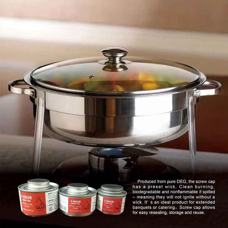 Dalam industri makanan - perkhidmatan pemanasan adalah penting untuk menjaga makanan pada suhu yang betul. Dari kafe -kafe kecil ke acara katering besar, hidangan chafing dan dulang pemanasan yang dikuasakan oleh bahan api kami memastikan bahawa makanan panas tetap panas dan menyelerakan. Ini bukan sahaja penting untuk rasa dan kualiti makanan tetapi juga untuk keselamatan makanan, kerana ia membantu mencegah pertumbuhan bakteria.